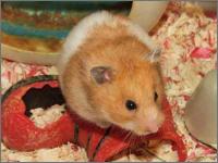 Befüllen Sie den Futternapf und stellen ihn in den Käfig. (Wundern Sie sich nicht, dass womöglich der Futternapf ständig leer ist und Ihr Hamster immer wieder "frisst" ... Hamster "hamstern", das bedeutet sie sammeln das Futter in ihren Backentaschen und verstecken es im Käfig in ihren "Vorratskammern")