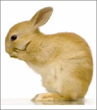 Kaninchenzähne wachsen anders als beim Menschen ständig. Deshalb benötigen Kaninchen immer etwas zum Nagen Heu und z.B. Zweige, hartes Brot, Nagerstein. Zu lange Zähne müssen vom Tierarzt gekürzt werden. |